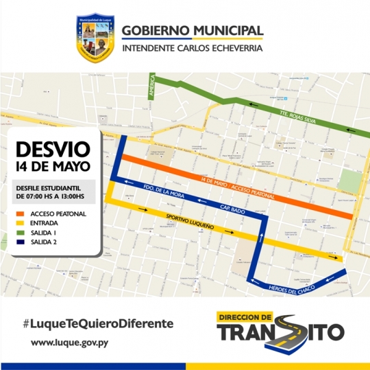 El Intendente de Luque, Carlos Echeverría a través de la Dirección de Cultura invita a la ciudadanía a participar del Desfile Estudiantil en Homenaje a la Patria a llevarse a cabo este sábado 14 de mayo del corriente a las 08:00 horas sobre la Avenida Gral. Aquino.