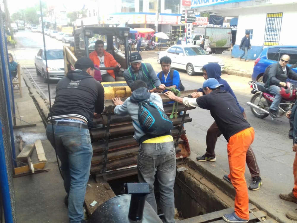 La Municipalidad de Luque, a través de la Dirección de Obras y Servicios, llevó adelante trabajos de reparación y colocación de rejillas de perfil de hierro en la Calle 14 de Mayo y Moisés Bertoni.
