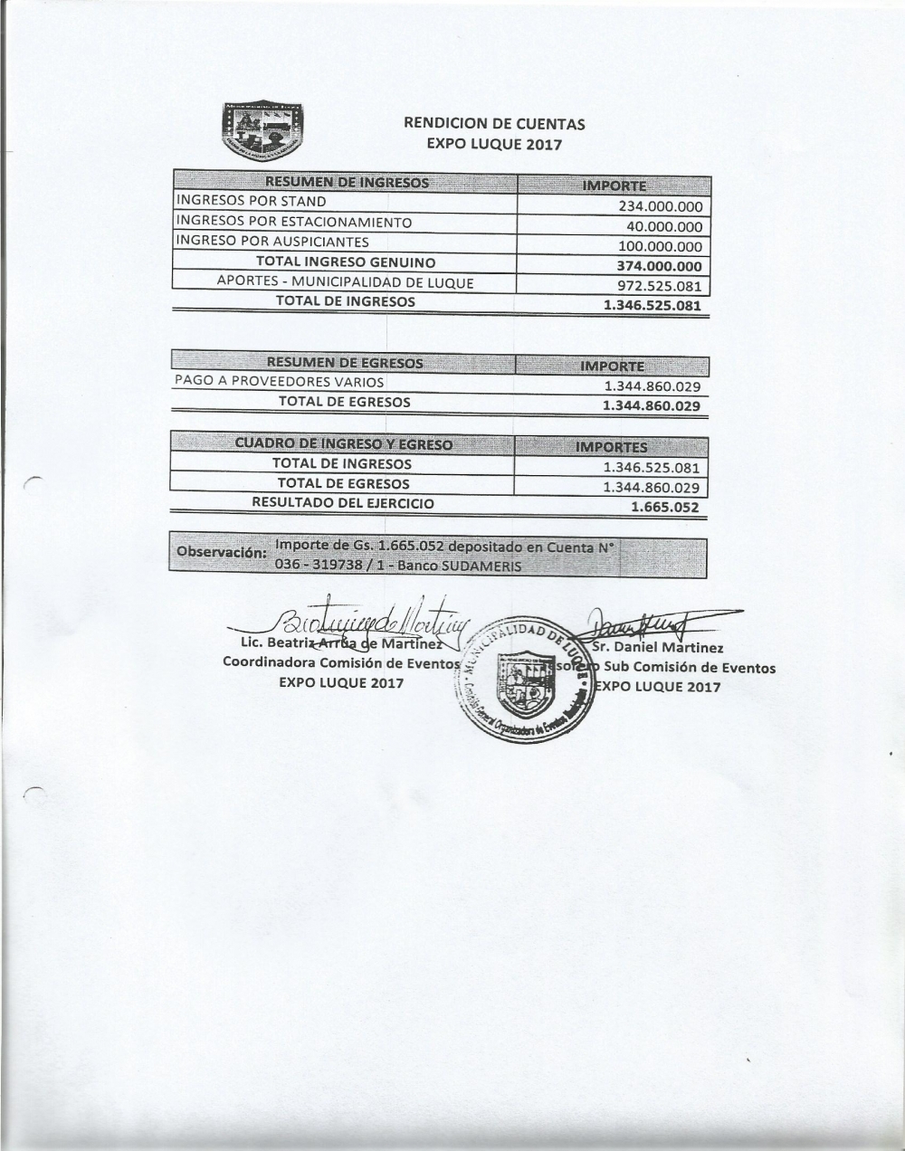 Los fondos municipales transferidos para el evento totalizan 1.072.525.081gs