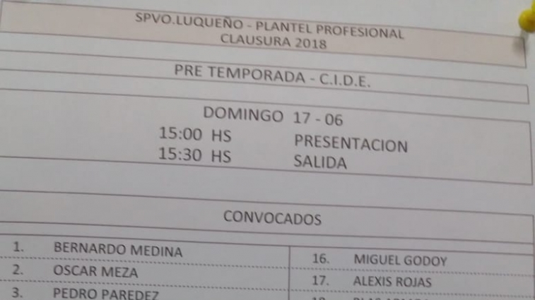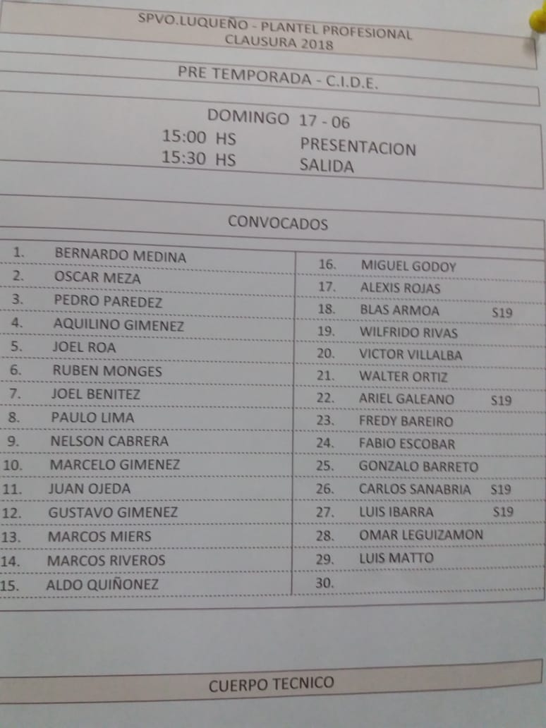 Lista de jugadores para la pretemporada del Sportivo Luqueño