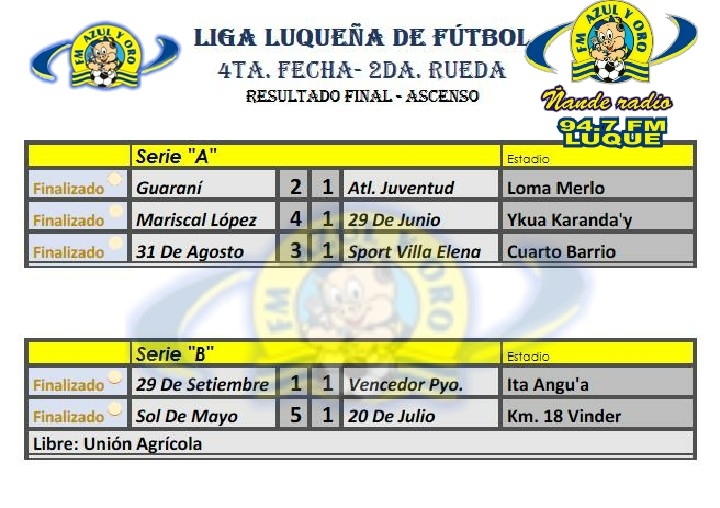 Resultados y tabla de posiciones de la Liga Luqueña de Fútbol