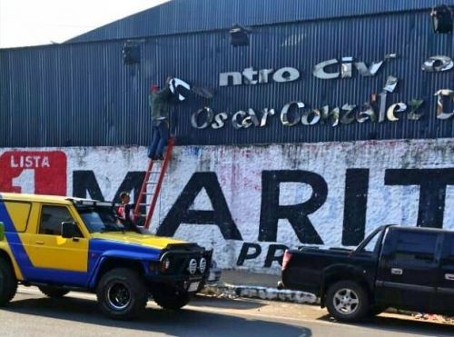 Manifestantes habían apedreado el cartel de Oscar González Daher y ayer lo sacaron definitivamente.