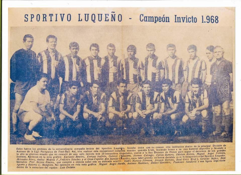 En 1968 el Kuré Luque se consagró campeón invicto en la división B