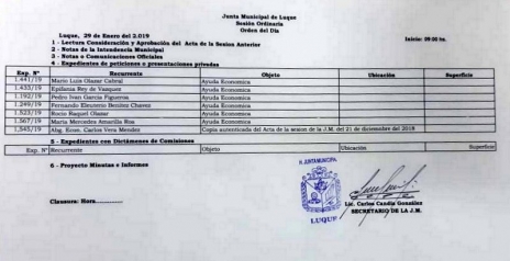 Corresponde a la plenaria del día martes 29 de enero del 2019