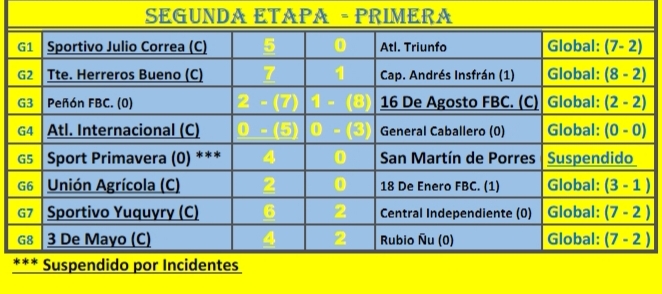 Resultados de la Liga Luqueña, segunda etapa partidos de vuelta