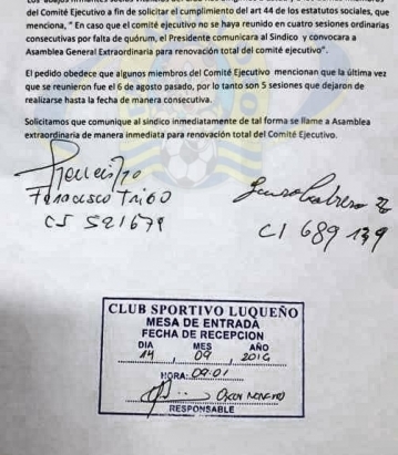 Solicitan asamblea extraordinaria en el Luqueño