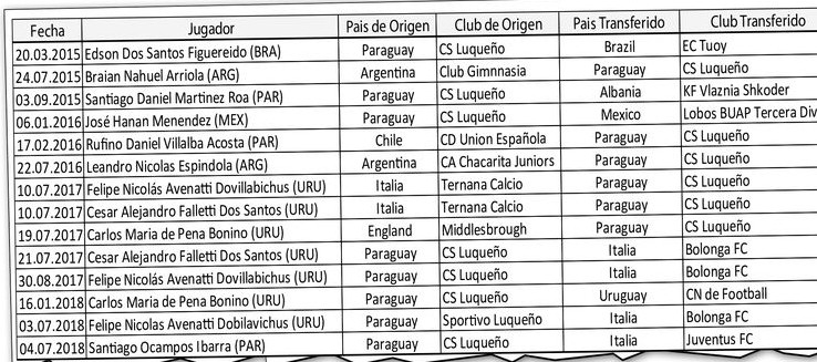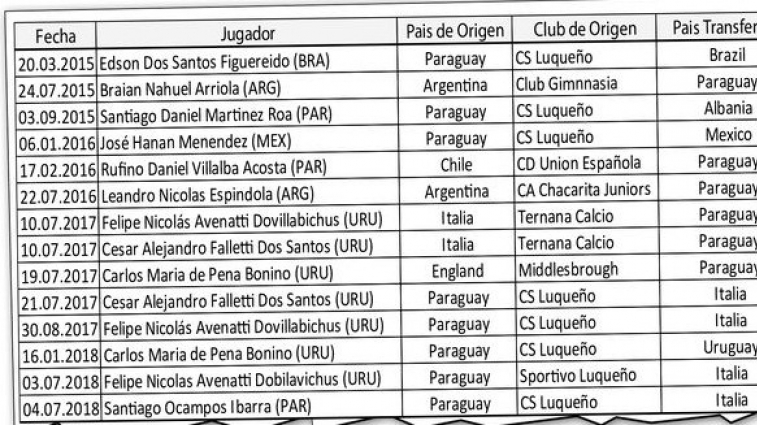 Se utilizaba al Sportivo Luqueño para el operativo. Varios jugadores que nunca pisaron el club, fueron transferidos por millones de dólares.