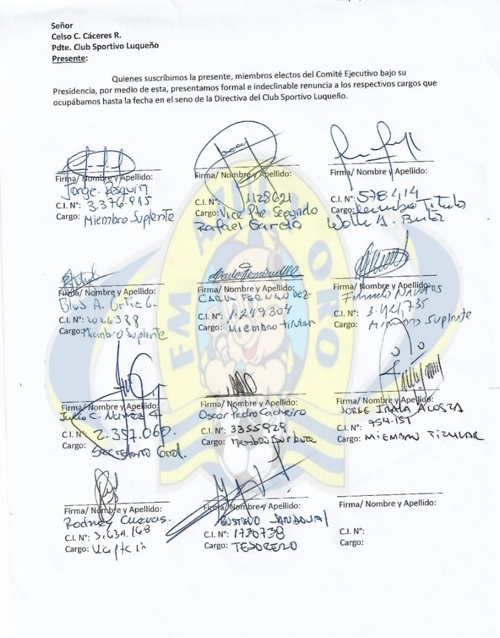 Renuncia masiva de los dirigentes del Sportivo Luqueño