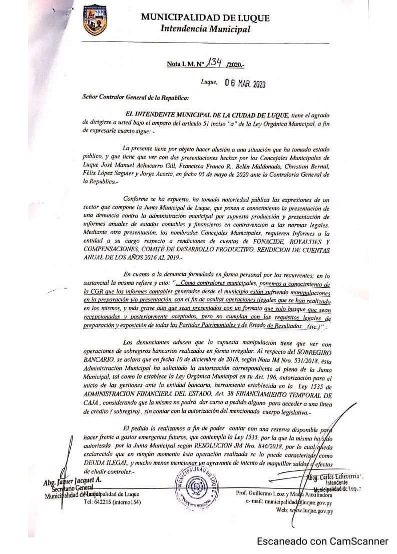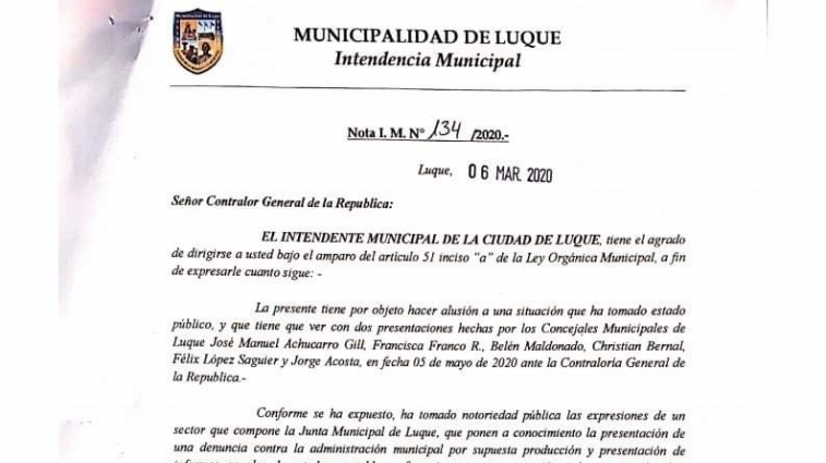 Intendente Echeverría envía nota a la Contraloría General de la Rca.