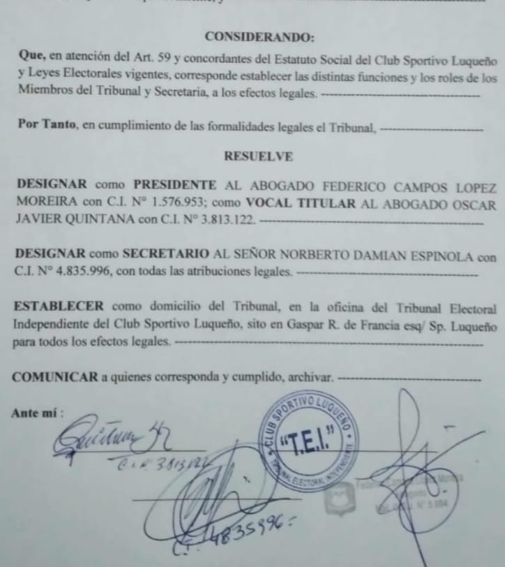 Es la convocada por el Pdte. del club Sportivo Luqueño