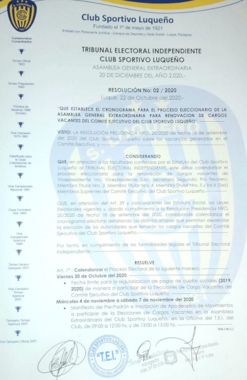 La asamblea extraordinaria es convocada para el 20 de diciembre