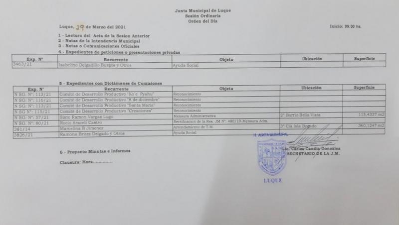 Orden del día de la Junta Municipal de Luque