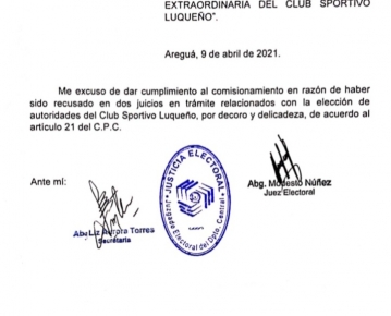 Referente a la asamblea del S. Luqueño del sábado 10/04/21