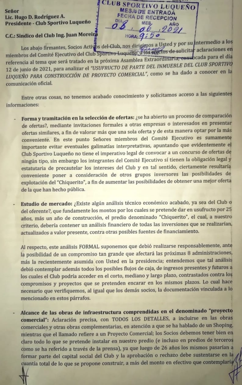 Socios del S. Luqueño solicitan aclaración sobre el usufructo del Chiquerito