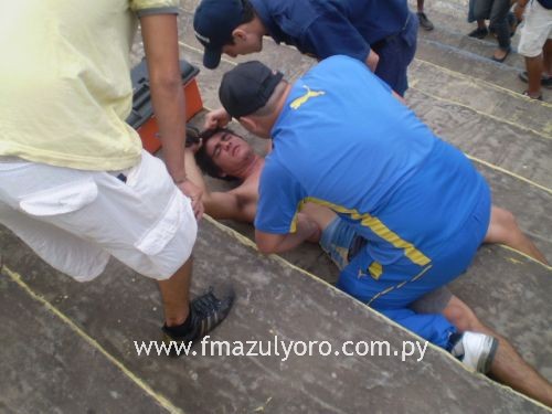 Banderas rotas, personas que corrían despavoridas era la imagen que se tenía. La peor parte se llevo un integrante de la Barra Bayo, quien quedo tendido en las graderías y vevepe fue atendido por los Bomberos Voluntarios de Luque y otros colaboradores. La rápida acción de la policía y los cascos azules evitaron que la pelea pase a mayores y se tenga que lamentar otra vida inocente.