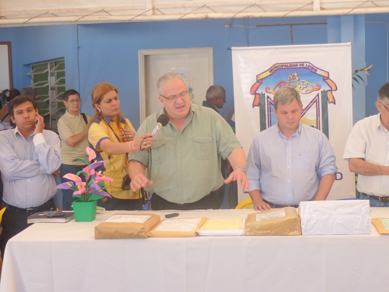 Nota: Dr. Cesar Meza Bria Intendente Municipal y Manuel Morinigo Pdte de la Junta Municipal.
