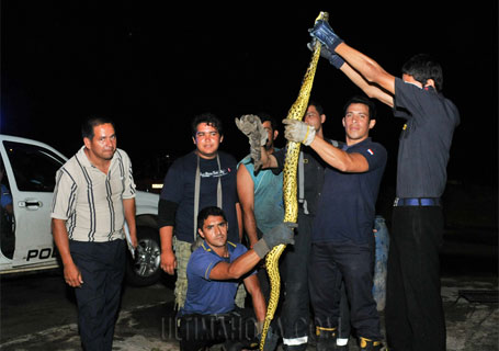 Los que se encontraban en el sitio no creyeron lo que estaban viendo: Una víbora de impresionante tamaño, específicamente una curiyú.