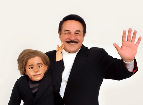 El mago Nizugan, junto a su famoso compañero de madera "Cachito". / Archivo-ABC Color