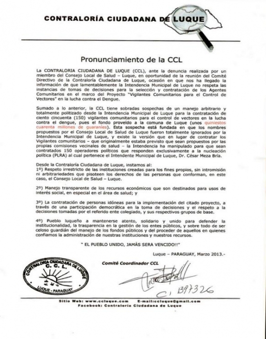 CONTRALORIA CIUDADANA DE LUQUE.