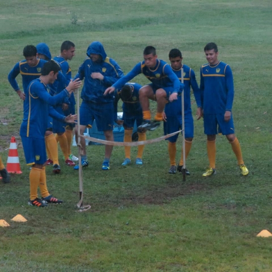 La actividad matutina estuvo mojada por la intensa lluvia que cayó, pero no fue obstáculo para que los jugadores se pongan a punto en lo físico. Realizaron tareas de potencia, salto, coordinación y salidas a velocidad en pendiente, bajo las indicaciones del preparador físico Joel Solalinde.