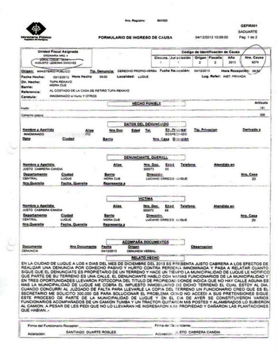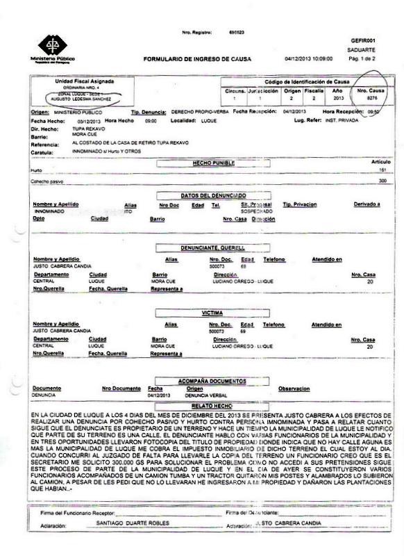 DENUNCIA POR COHECHO PASIVO Y HURTO CONTRA FUNCIONARIOS MUNICIPALES
