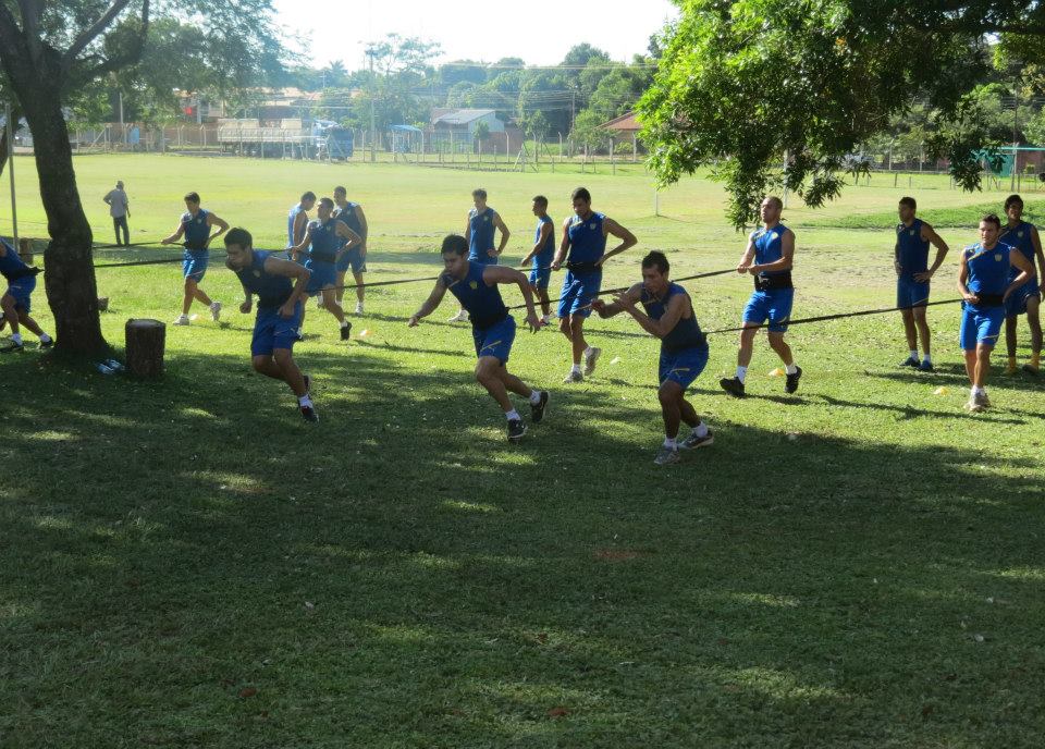 En esta oportunidad, los futbolistas del auriazul comenzaron con un calentamiento previo. Luego continuaron con trabajo de fuerza con gomas y subidas a velocidad, a cargo del preparador físico Joel Solalinde.
