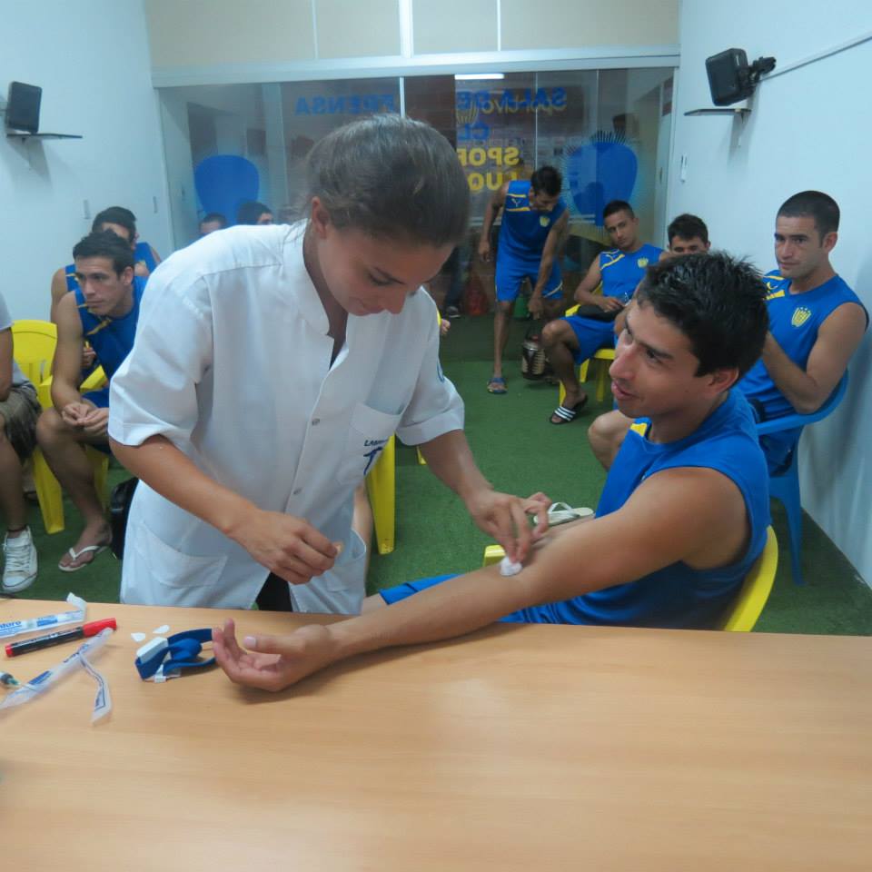 Tras el entrenamiento matinal, los futbolistas se realizaron un análisis de rutina.