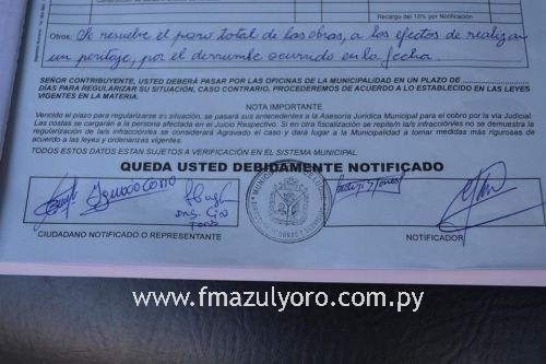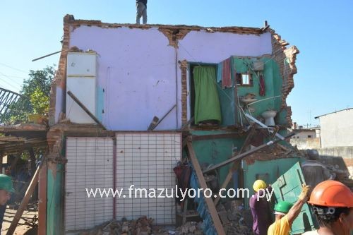 La Arq. Jadiyi Torres, Jefa de Obras Particulares, concurrió esta tarde al sitio donde se produjo el derrumbe de una vivienda, sobre la calle Moisés Bertoni y 14 de Mayo, para verificar el lugar y notificar sobre el cese de las obras de ampliación del supermercado Virgen del Rosario para realizar un peritaje que determine la seguridad de la zona a fin dar tranquilidad a los vecinos. La cédula de notificación lo recibió uno de los propietarios del supermercado, don Ignacio Cano.