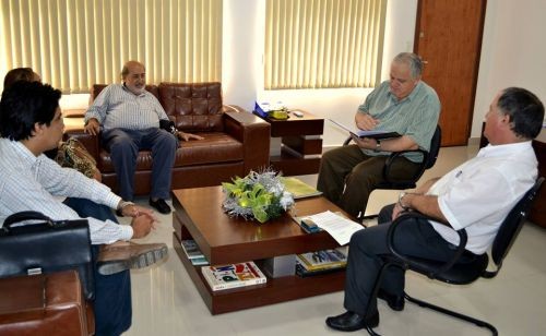El Intendente Meza Bría primeramente se reunió con el director de Asesoría Jurídica, Vidal Pereira y los asesores externos, Ricardo Lugo Rodriguez y Ricardo Lugo Arrua para interiorizarse sobre la situación del proceso que se mantiene con el ente estatal.