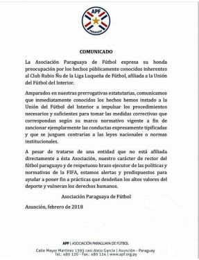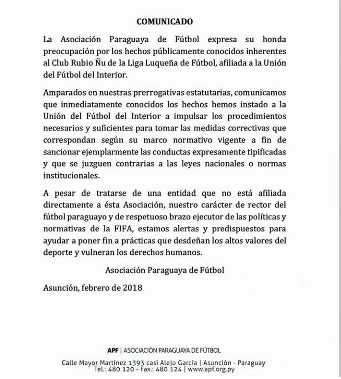 Comunicados sobre el caso del Club Rubio Ñu