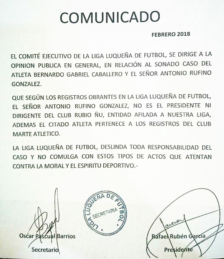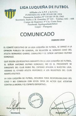 La APF y la Liga Luqueña lo publicaron esta tarde