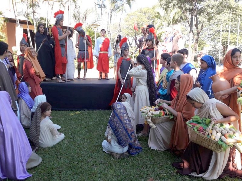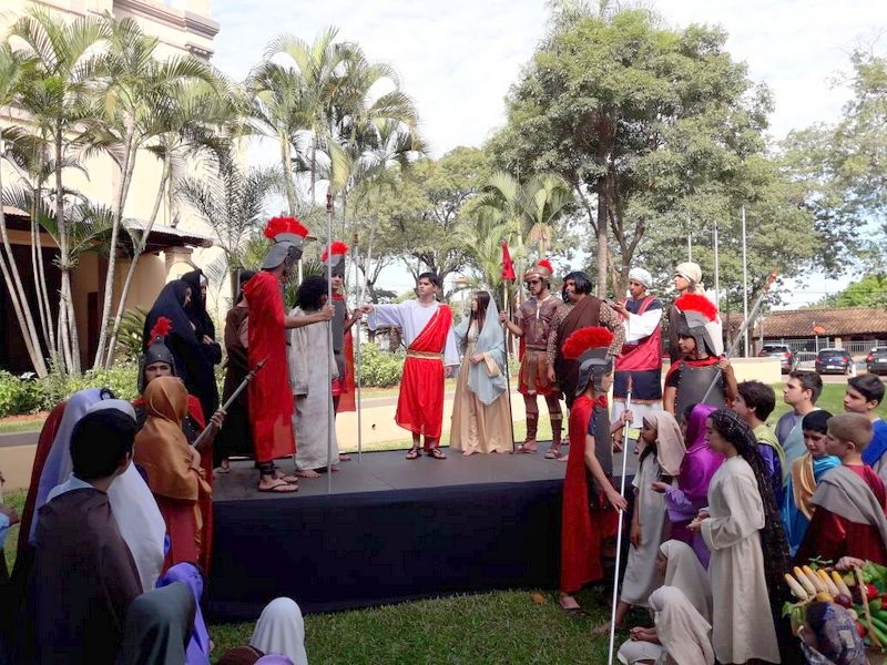 Tradicional intervención urbana con estatuas humanas