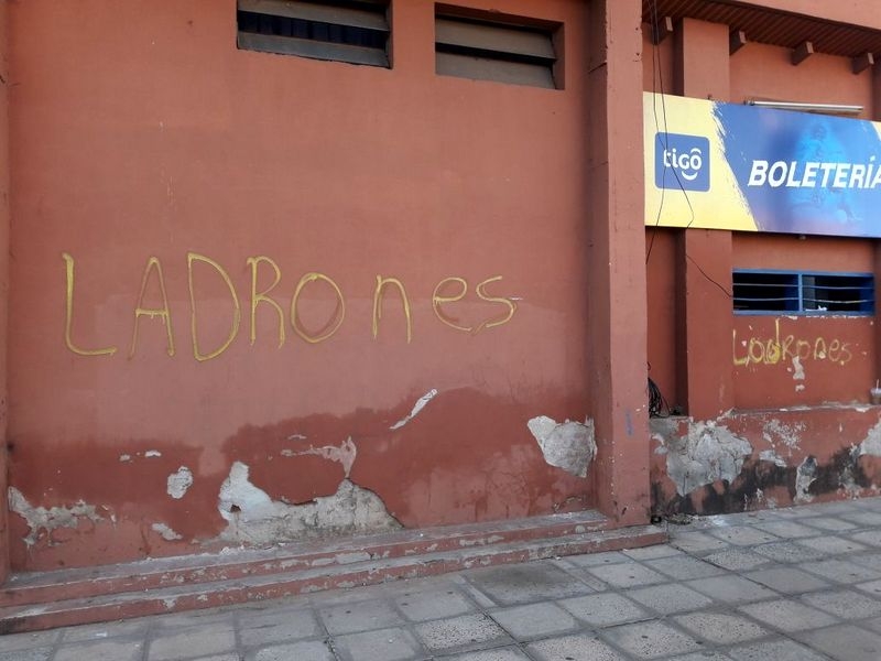 Grafitis de protesta contra dirigentes del Sportivo Luqueño