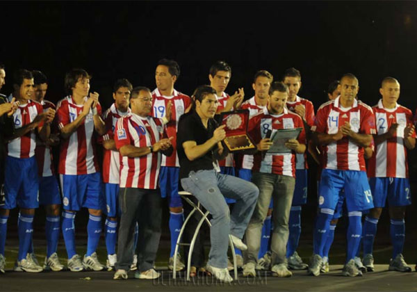El homenaje terminó siendo solo para Salvador Cabañas y Denis Caniza, a quien lo honraron por sus cuatro ediciones (de 1998 a 2010) y doce partidos jugados en Copas del Mundo, luciendo el brazalete de capitán en el último.