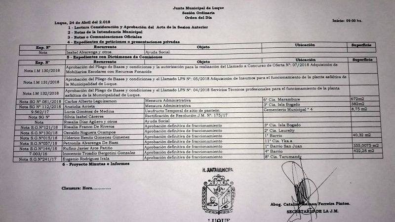 Orden del día de la Junta municipal de Luque para el martes 24 de abril