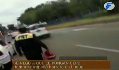 Un hombre acusó a la Policía Municipal de Tránsito de Luque de actuar mal, luego de que se haya conocido un video donde se lo ve acelerando una camioneta en medio de una barrera para evitar que se le ponga cepo.