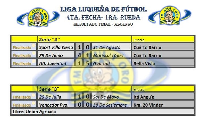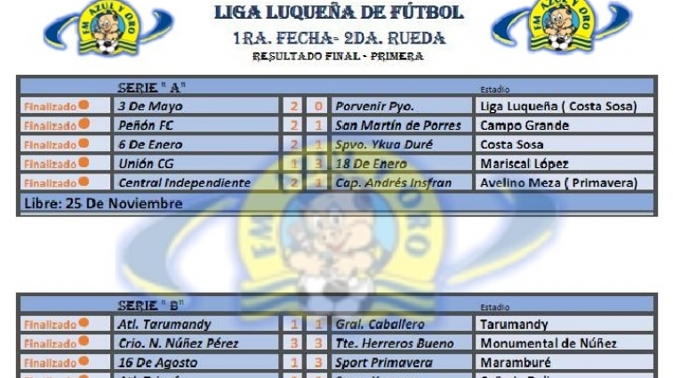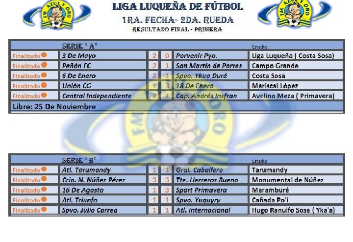 Resultados y tabla de posiciones de la Liga Luqueña de Fútbol