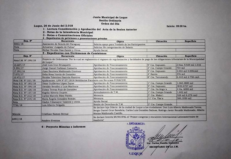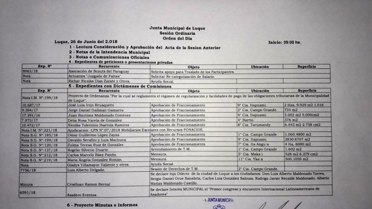 Orden del día de la Junta municipal de Luque para el martes 26 de junio