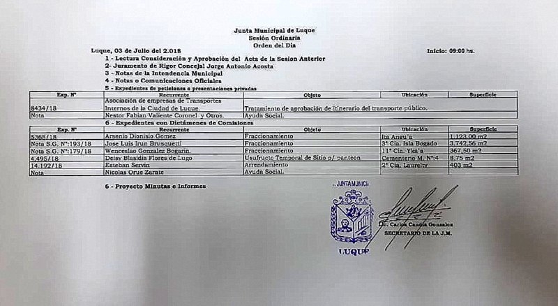 Orden del día de la Junta municipal de Luque para el martes 03 de julio