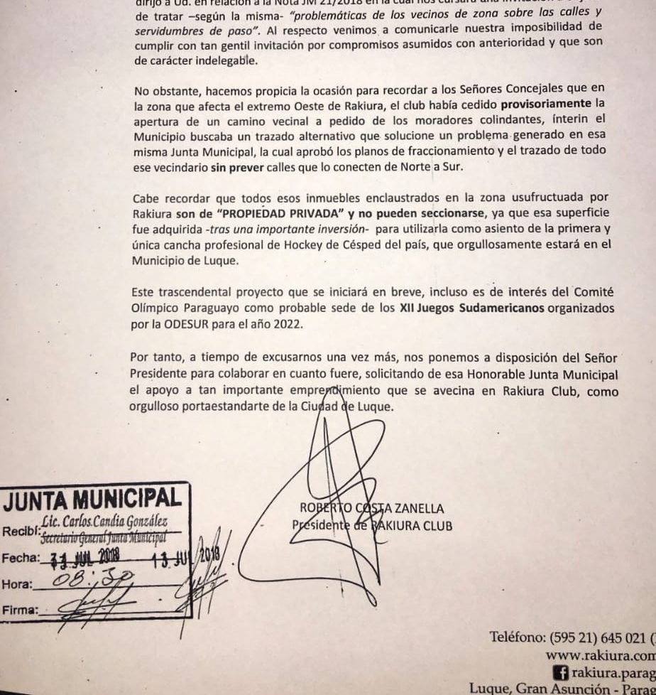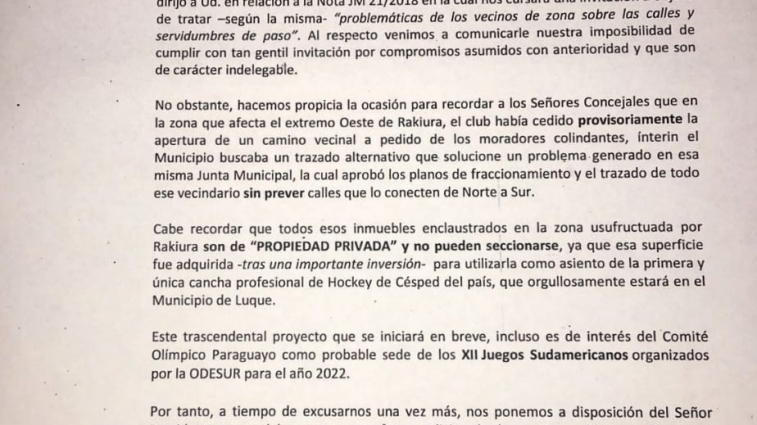 Rakiura se excusa para una reunión con la Junta Municipal y Vecinos