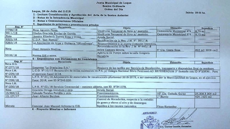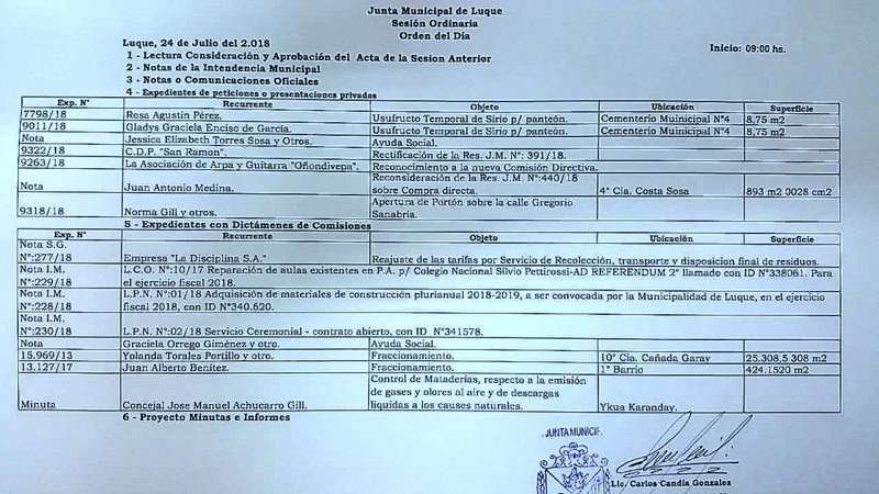 Orden del día para la Sesión Ordinaria del martes 24 de julio
