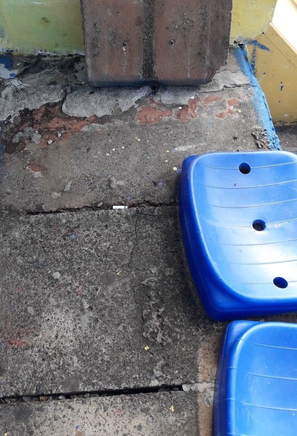 Una loseta se desprendió, estaba carcomida por efectos del transcurso del tiempo