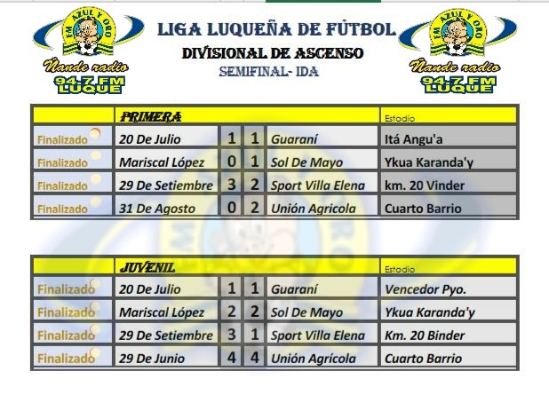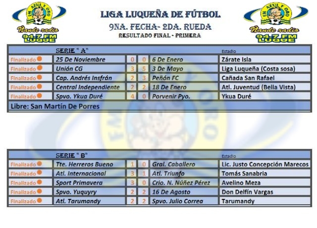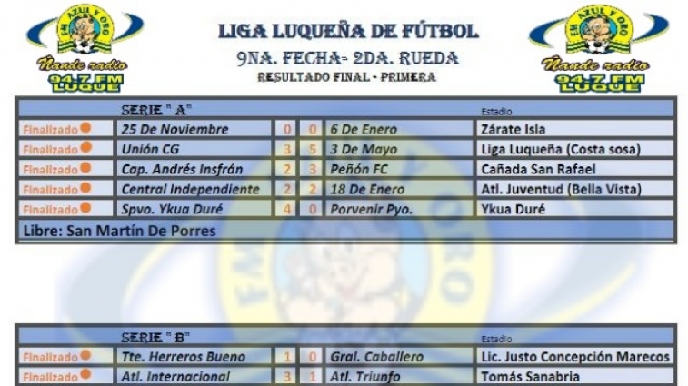 Resultados de la novena fecha de la Liga Luqueña de Fútbol