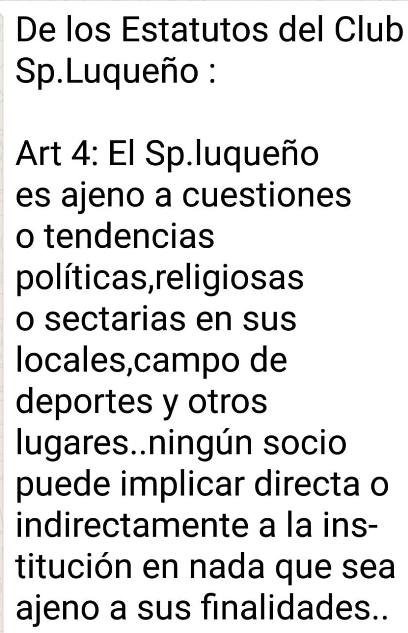 El art. 4to. prohíbe implicar al club en cuestiones políticas