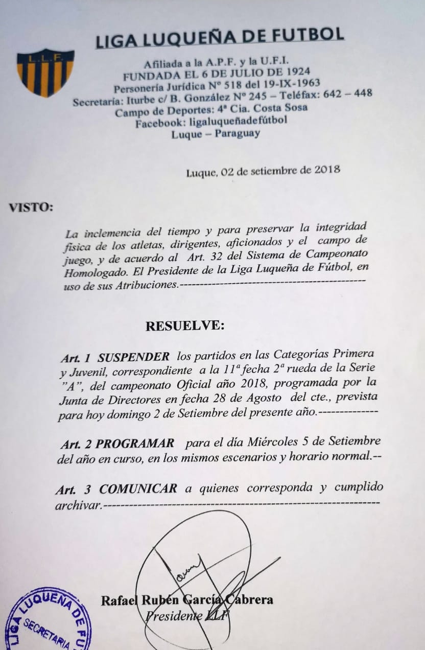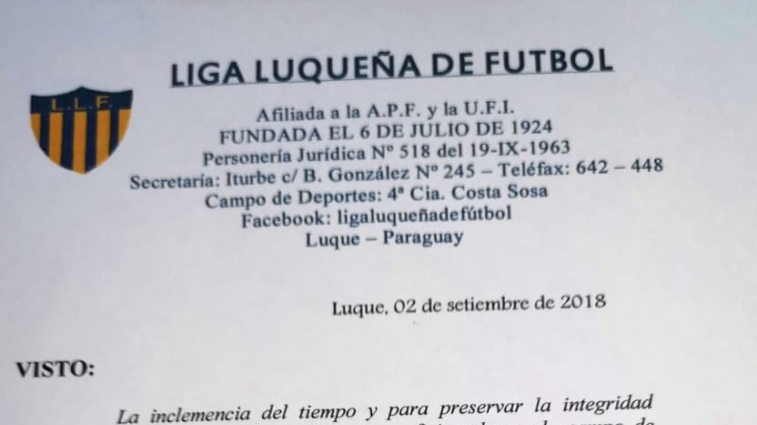 Suspendidos los partidos de la Liga Luqueña de Fútbol