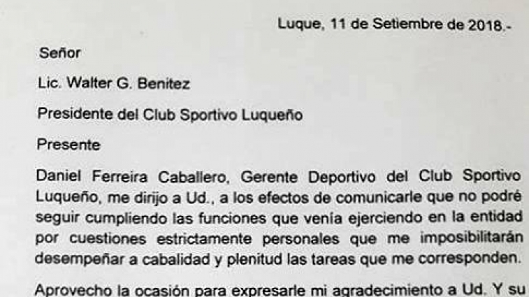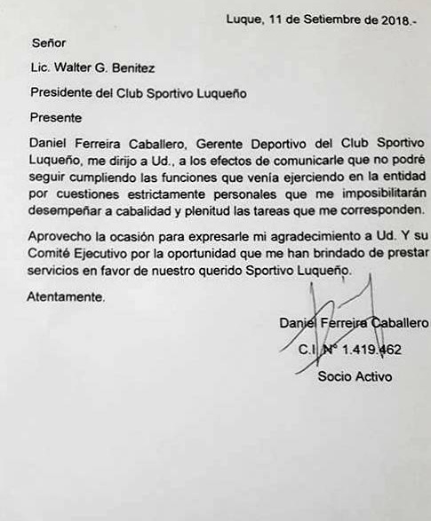 Ayer presentó su renuncia al cargo de Gerente Deportivo