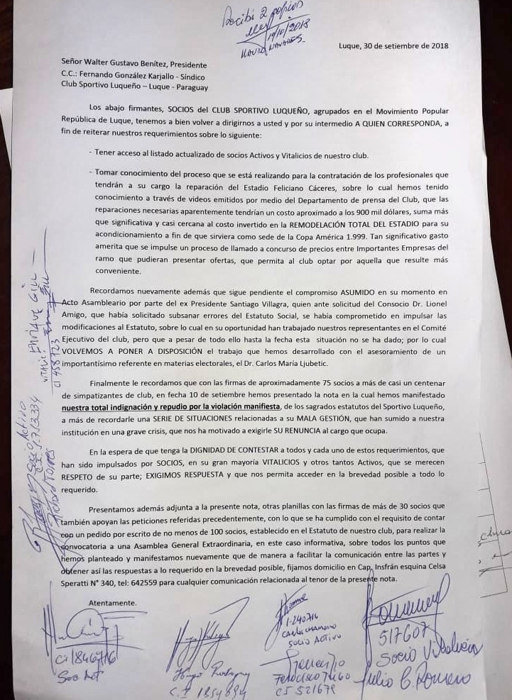 En el mismo acto de presentación, recibieron la respuesta a una nota anterior