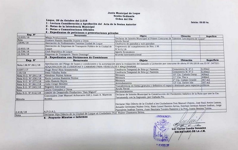 Corresponde a la plenaria del día martes 09 de octubre del 2018