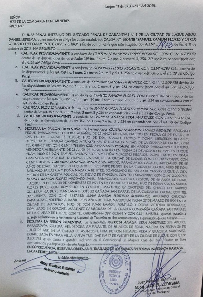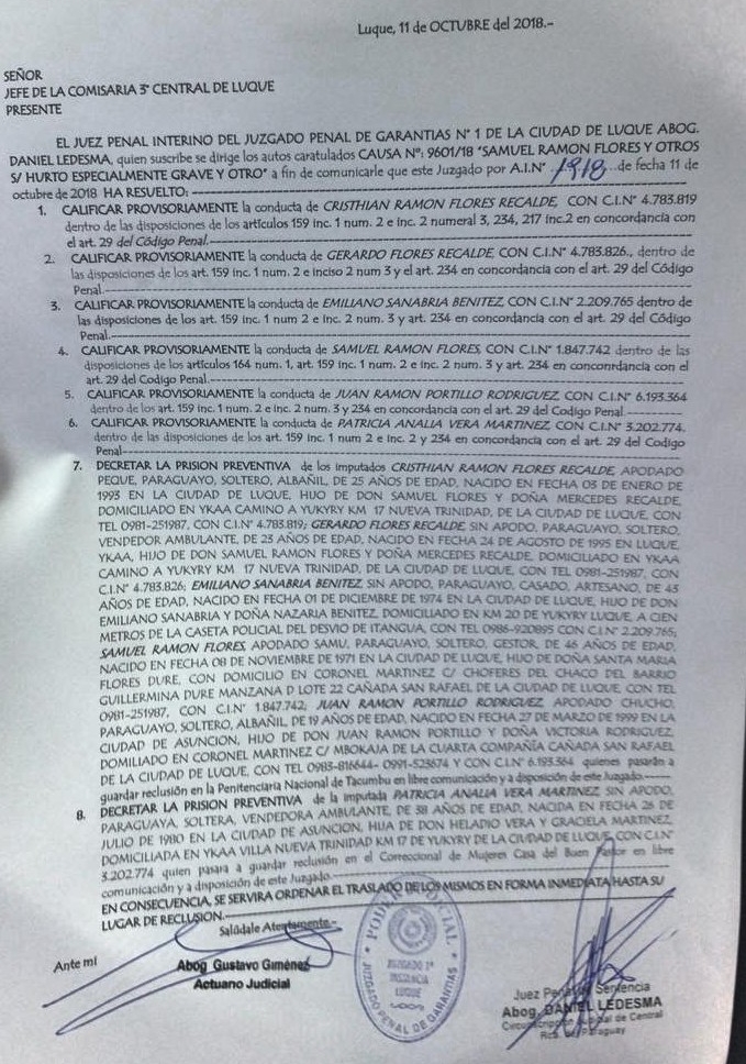 Decretan prisión preventiva de los líderes de asentamientos de Luque