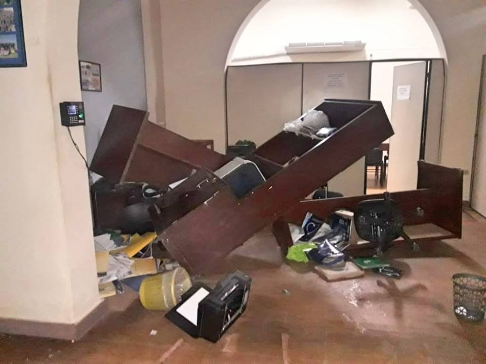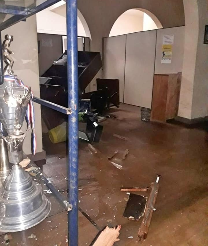 La secretaría, la sala de trofeos y el estacionamiento fueron afectados.